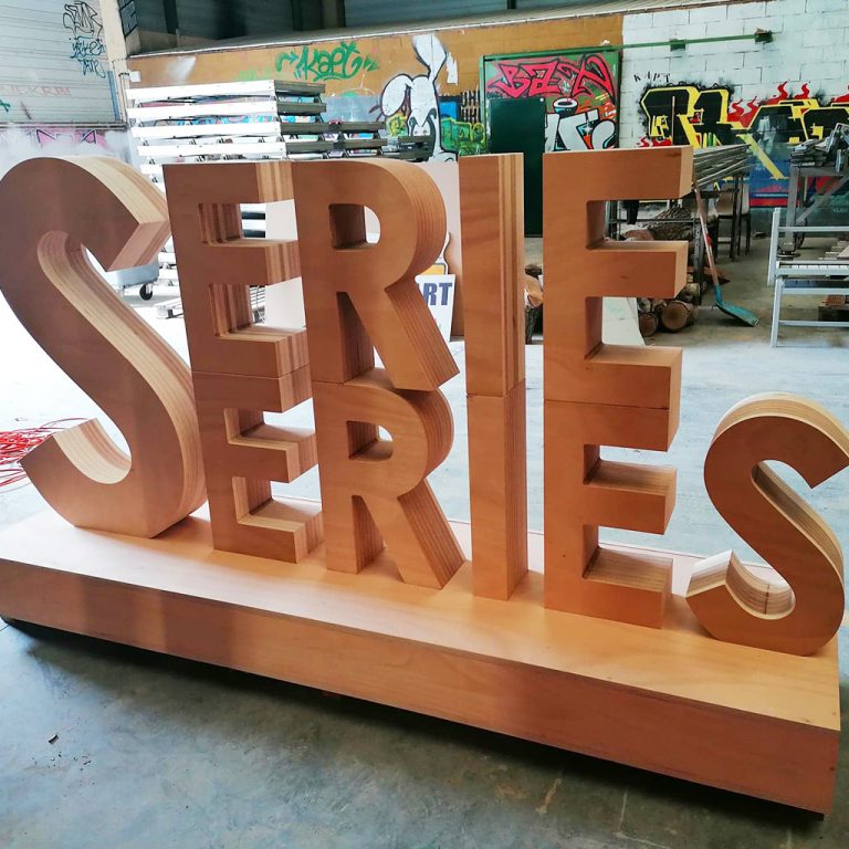 Le bois est un matériau intemporel, apprécié pour son esthétique chaleureuse, sa solidité et son caractère authentique. Utilisé pour la fabrication de lettres, logos et formes 3D XXL, il apporte une dimension naturelle et qualitative aux projets de communication visuelle, d’aménagement ou de scénographie.