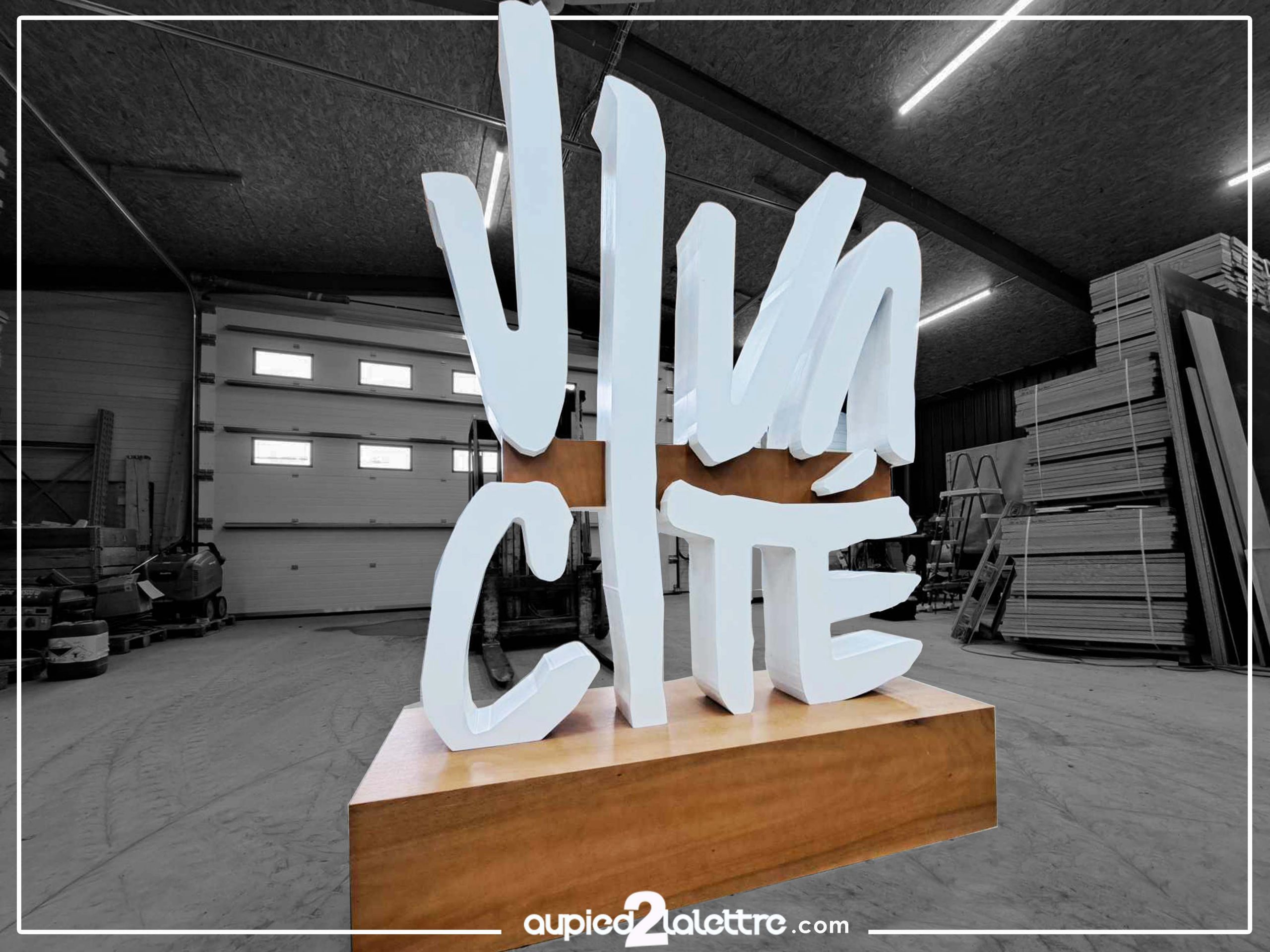 Le bois est un matériau intemporel, apprécié pour son esthétique chaleureuse, sa solidité et son caractère authentique. Utilisé pour la fabrication de lettres, logos et formes 3D XXL, il apporte une dimension naturelle et qualitative aux projets de communication visuelle, d’aménagement ou de scénographie.