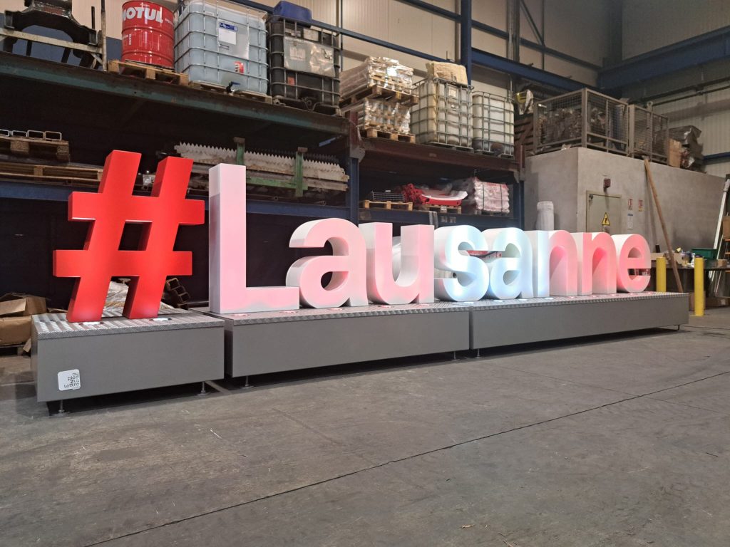 Ainsi, les lettres géantes Lausanne Suisse Lac Léman illustrent parfaitement notre capacité à répondre à des projets d’envergure internationale.